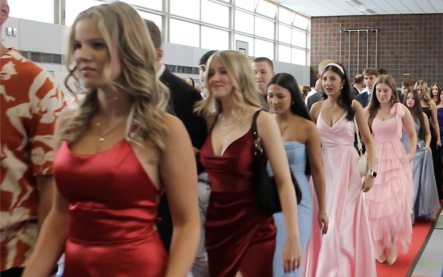 Die Abschlussklassen beim Einzug in die alte Turnhalle, deren Bühne heute vor allem ihnen gehörte.