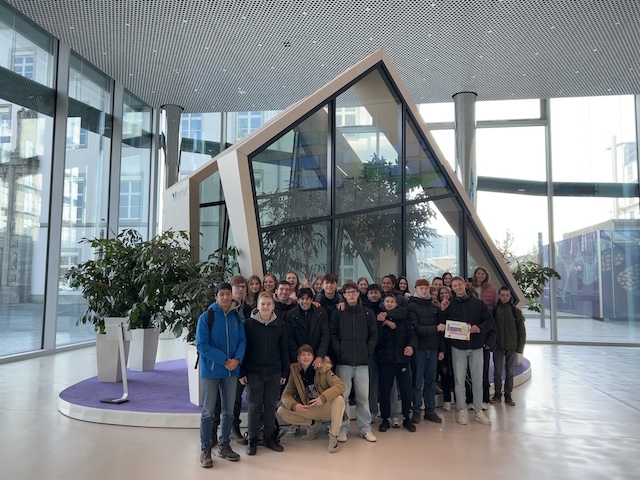 Im Februar haben die Klassen G9b und G10a das Pharmaunternehmen Merck besucht. Mit einer Busfahrt durch das Merck-Gelände konnten sich die Schülerinnen und Schüler ein beeindurckendes Bild des bekannten Darmstädter Unternehmens machen und sie erfuhren gleichzeitig, welche Bedeutung das bekannte Traditionsunternehmen auch heute für die Region wie auch überregional besitzt. Wichtig und empfehlenswert: Dabei wurde den Jugendlichen vermittelt, wie sie sich bei Merck bewerben können.