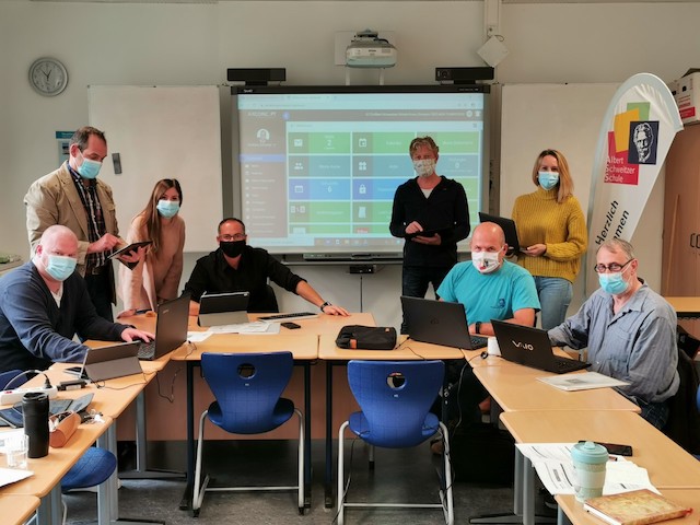 In der Nutzung dieser Plattform aber erweist sich die Corona-Pandemie mit durchaus noch möglichen Homeschooling-Szenarien als regelrechter Katalysator: Noch im Sommer nahm nahezu das komplette Kollegium an Online-Schulungen teil und nach den Herbstferien schulte ein achtköpfiges Lehrerteam unter der Federführung der IT-Beauftragten Andreas Schiener und Timo Kiel sämtliche Lehrkräfte in acht Kleingruppen, wobei viele Praxisübungen Sicherheit im Umgang mit der MSNpro-Cloud vermitteln sollten. „Zudem erhielten alle Lehrkräfte einen von uns selbst erarbeiteten Leitfaden zum Nachschlagen“, so Andreas Schiener.