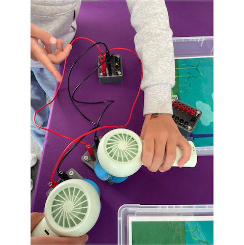 An verschiedenen Stationen haben wir zum Beispiel unterschiedliche Stofffasern kennengelernt und erfahren, worin sich natürliche und synthetische Fasern unterscheiden. Mit Mikroskopen haben wir verschiedene Stofffasern untersucht – sogar unsere eigenen T-Shirts. Und wir haben ein Modell einer T-Shirt-Fabrik gebaut, die mit Windenergie betrieben wird.