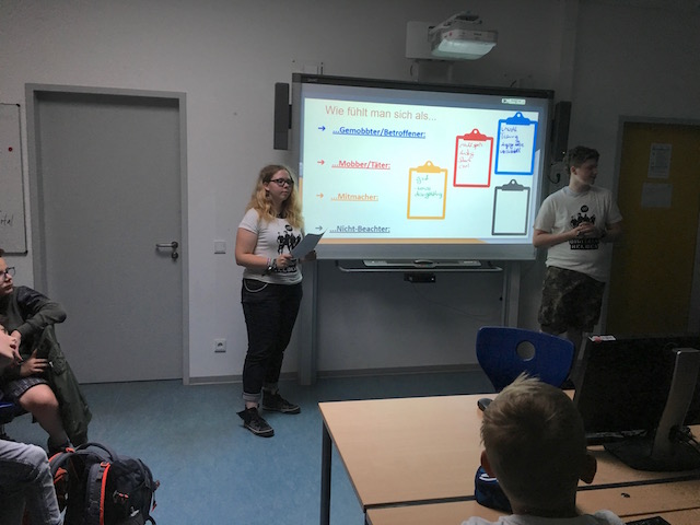 Jugendliche und auch bereits Kinder bewegen sich in den Sozialen Netzwerken mit einer Selbstverständlichkeit, die manchem ‚Älteren‘ befremdlich erscheinen mag. Der Umgang mit den sich ergebenden vielfachen Möglichkeiten allerdings will gelernt sein, wird diese Form der Kommunikation doch immer wieder zu Beleidigungen mit manchmal sehr schlimmen Folgen missbraucht. Hier setzt die Arbeit der Digitalen Helden, in der Sache erfahrenen Schülerinnen und Schülern verschiedener Klassen, an, indem sie zum einen ‚technische‘ Hinweise zum Umgang mit der Software der Plattform liefern: Wie schütze ich beispielsweise bestmöglich meine Privatsphäre, wo setze ich die wichtigen Häkchen? Sie klären zum anderen über die möglichen Folgen von Cybermobbing auch für die Täter auf und geben wertvolle Tipps für den Fall, dass Konflikte entsanden sind. Vielen Dank für diese wertvolle Arbeit!