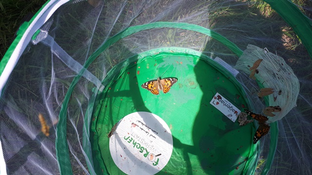 Die Tiere und Pflanzen wurden im jeweiligen Klassenraum untergebracht. Nachdem sie eingezogen waren, mussten sie sorgfältig gepflegt und versorgt werden. Täglich wurde gefüttert, gegossen, gemessen, gezeichnet, fotografiert und dokumentiert. Zwischenzeitlich gab es auch Rückschläge: Die Salzkrebse mussten einige Male neu angezogen werden, manche Samen keimten nicht, der Strom fiel aus, … Zum Glück konnten aber auch Erfolgserlebnisse verzeichnet werden: Die Entwicklung der Distelfalter und Marienkäfer konnte sehr gut beobachtet werden, die Bohnen keimten und wuchsen schnell, die Wasserflöhe machten lustige Sprünge, … Sehr schön war, dass am Ende des Projektes die Distelfalter und Marienkäfer auf unserer Blumenwiese hinter der Sporthalle freigelassen werden konnten.