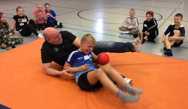 Konflikte können schnell auftreten. Wie können unsere jungen Menschen mit ihnen umgehen, wenn sie ungewollt in Konflikte geraten, wie sie am besten vermeiden? Viele wertvolle Hinweise und Tipps erhalten unsere Sechstklässler im Gewaltpräventionstraining mit dem erfahrenen Anti-Aggressionstrainer Dieter Lietz. Konfkliktsituationen gibt es zahlreiche, die in verbaler wie auch körperlicher Gewalt enden können. Welche Rolle spielt in diesem Zusammenhang ein gesundes Selbstbewusstsein, wie wichtig ist es, sich auf andere verlassen zu können? Wie kann man sich sinnvoll und angemessen wehren? Was sollte man besser lassen? In verschiedenen praktischen Übungen mit hohem Spaßfaktor sammeln die (Fast)-Teenager praktische Erfahrungen vom Aggressionsabbau im fairen Wettkampf bis hin zur Mutprobe, die jede/r stolz mitgemacht und bewältigt hat.