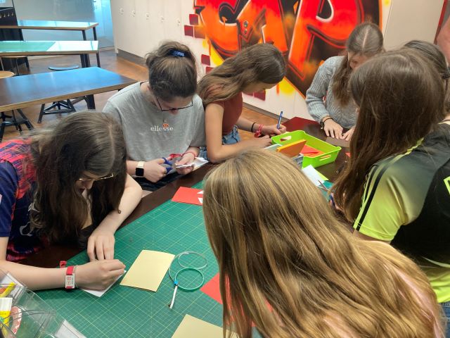 Schülerinnen der G6b in einer Bastelecke