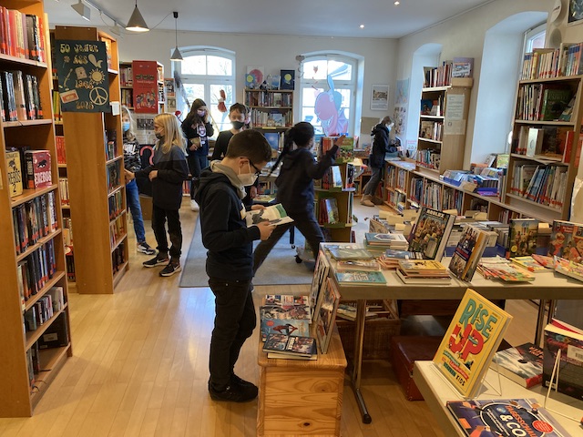 Schülerinnen und Schüler der G5a beim Schmökern im Glöckelchen