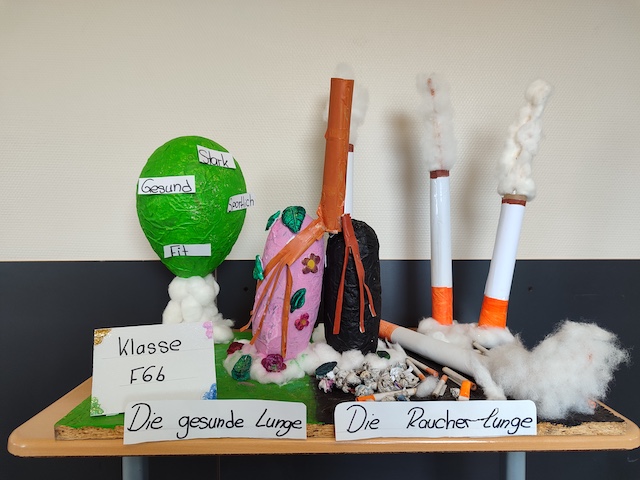 Schülerinnen und Schüler der Klasse F6b haben im Rahmen des Wettbewerbs „Be smart – Don’t start“ eine beeindruckende Skulptur geschaffen: eine Lunge, die den Unterschied zwischen Gesundheit und den Folgen des Rauchens zeigt.